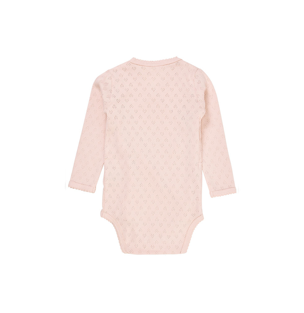 COPENHAGEN COLORS POINTELLE HEART CROSSOVER BODY LS DUSTY ROSE